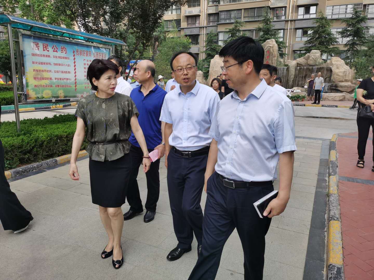 活動中,由陜西華健投資有限公司領(lǐng)導陪同文明辦創(chuàng)文辦主任張桂芝等一行人觀摩了社區(qū)創(chuàng)文宣傳展板、社區(qū)孝文化景觀小品、未成年人思想道德建設(shè)工作及社區(qū)親民活動情況,大家紛紛拍照記錄,學習其先進經(jīng)驗。在觀摩過程中,海林御苑銷售經(jīng)理劉芳向觀摩小組講解了孝文化在小區(qū)中廣泛體現(xiàn),通過隨處可以的孝文化典故,展示了小區(qū)內(nèi)孝文化的濃厚氛圍。